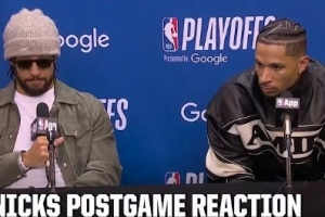 体育资讯4月21日讯 NBA季后赛G2,尼克斯主场106-107遭老鹰逆转,大比分1-1战平,赛后布伦森和哈特接受了媒体采访,以下为采访全文。
