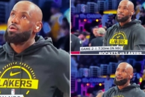湖媒@PurpGoldLakers晒图并配文:“詹姆斯脸上露出了那熟悉的表情,季后赛模式的詹姆斯已经准备好了。”