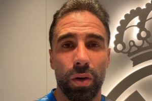 体育资讯4月22日讯 西甲第33轮比赛,皇马主场2-1击败阿拉维斯,皇马后卫卡瓦哈尔赛后寄语球迷。