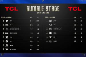 TES以6胜1负稳居头名,BLG暂列第二,NIP/JDG/AL三队同分,WE则是7战全败+小局14连败。
