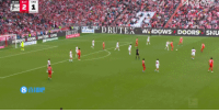比赛第37分钟,阿方索·戴维斯打门击中防守球员变线入网,拜仁6分钟连进3球3-1领先斯图加特!